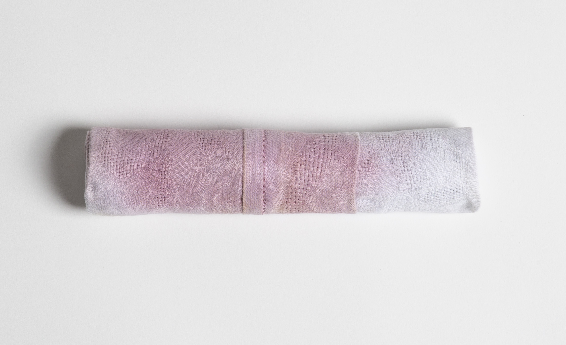À partir d’une serviette appartenant à Fabien Vallos, Grégoire d’Ablon évoque le souvenir d’un évènement malencontreux lors du premier banquet qu’il a partagé et co-créer avec Fabien ( XX. Nunc est bibendum, Les Alyscamps, Arles, 2018). Le pli trompe l’oeil, dit, en « rond de serviette », insiste sur l’hospitalité à toute épreuve qu’est l’expérience d’un banquet.